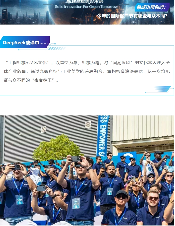 屆時,全球2000余名客商將齊聚徐工,創(chuàng)下參會人數(shù)歷史之最,跨越五大洲的文化在這里交融,這場工程機械界的“全球嘉年華”正蛻變?yōu)槭澜缂壆a(chǎn)業(yè)盛會。